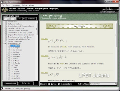 Menjelang datangnya bulan Ramadhan, bulan penuh dengan rahmat dan maghfirah yang tinggal beberapa hari lagi akan menyongsong kita, Penerjemah LPBT Jakarta, pada artikelnya kali ini ingin berbagi sebuah aplikasi kecil yang mungkin bermanfaat untuk kita semua. Sebuah aplikasi Al’Quran Viewer yang lengkap dan cukup bagus untuk mempelajari isi kitab suci Al’Quran yang juga dilengkapi terjemahan bahasa Jepang dan bahasa Inggris.